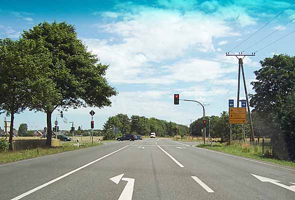 Sie verlassen die B 58 und biegen an der Ampel links ab Richtung Kevelaer - Sonsbeck.